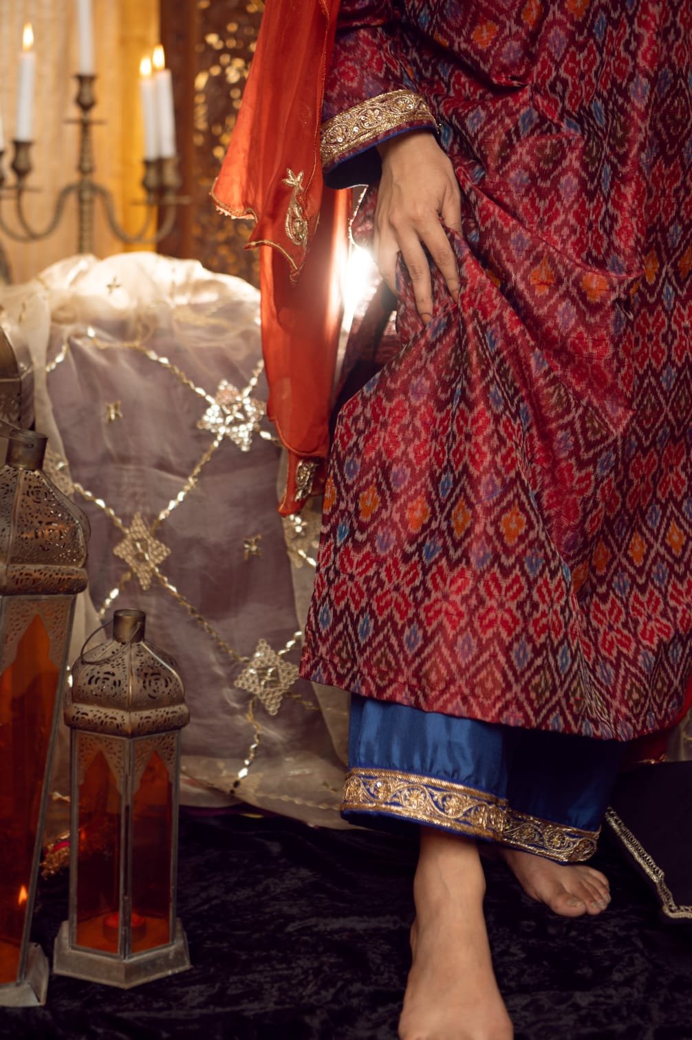 – Fabric: Pure hand woven silk ikat