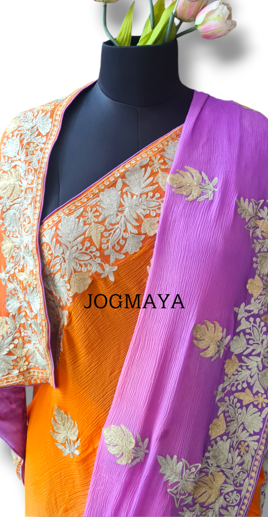The combination of lilac and orange in this saree creates a striking visual contrast that is both eye-catching and elegant. Whether you’re attending a wedding, a party, or a cultural event, the Sunset Splendor Saree will ensure you stand out with its unique charm and timeless appeal.
