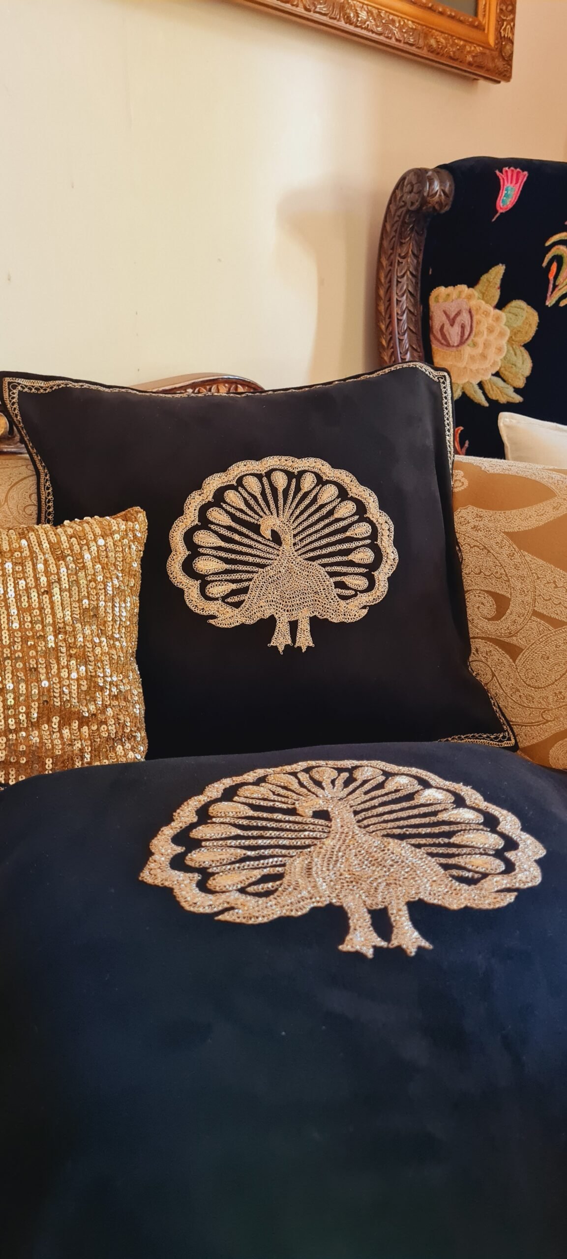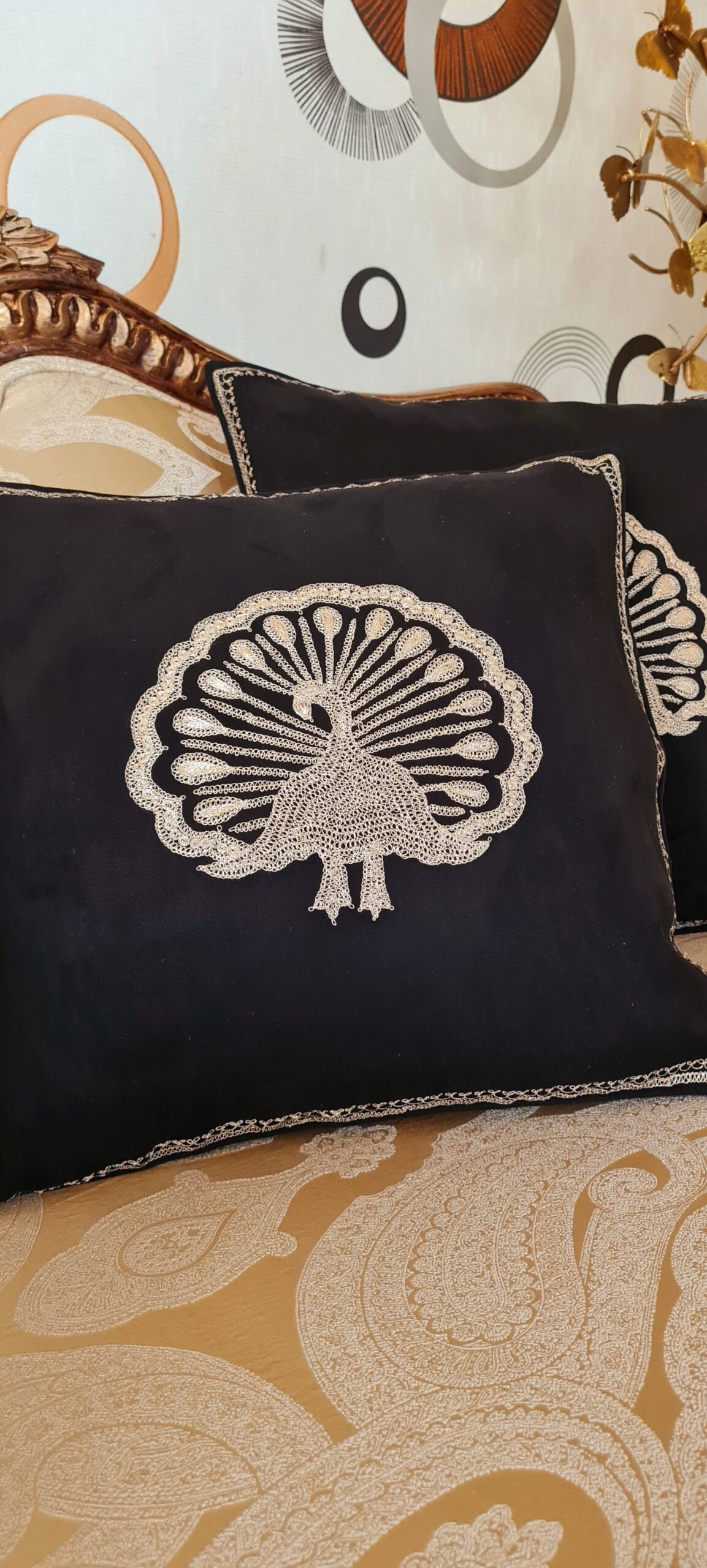 Elevate your home decor with our exquisite suede cushion cover, featuring a stunning peacock motif embroidery. Crafted from premium-quality suede, this cushion cover exudes luxury and sophistication.