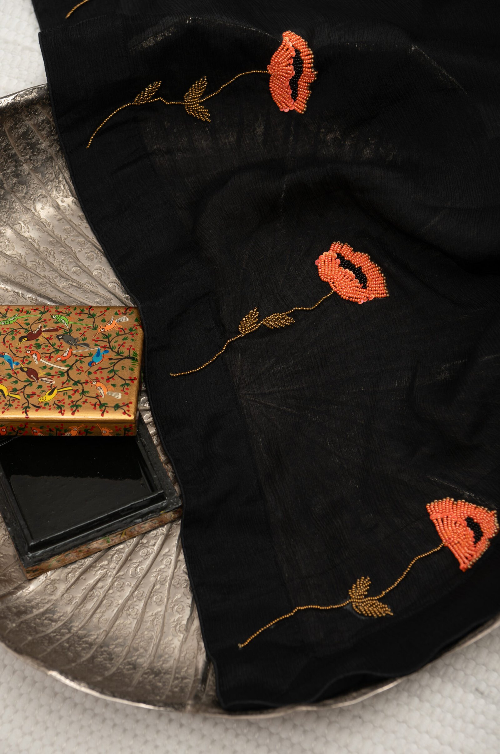 The stunning Poppy Saree, crafted in luxurious pure chinnon This exquisite saree exudes sophistication and elegance, making it perfect for every occasion.
