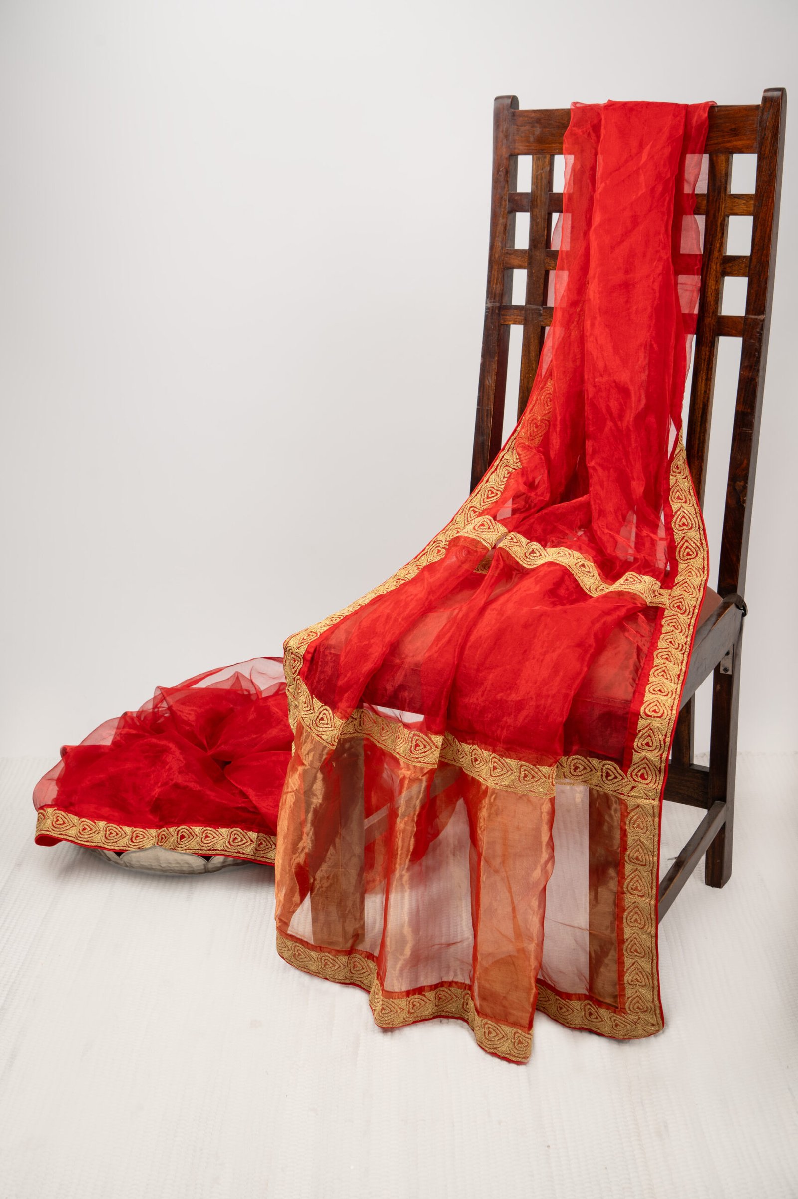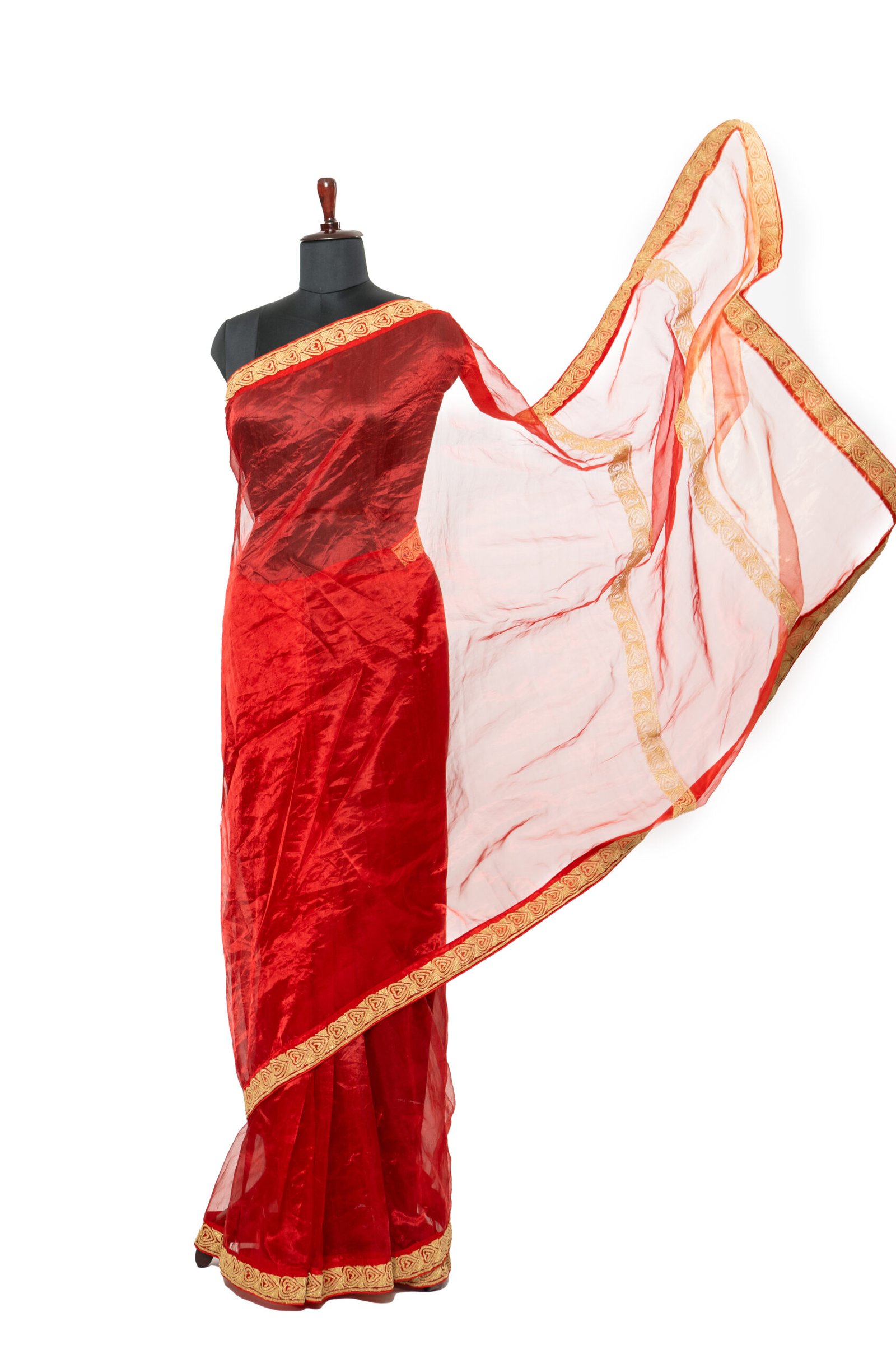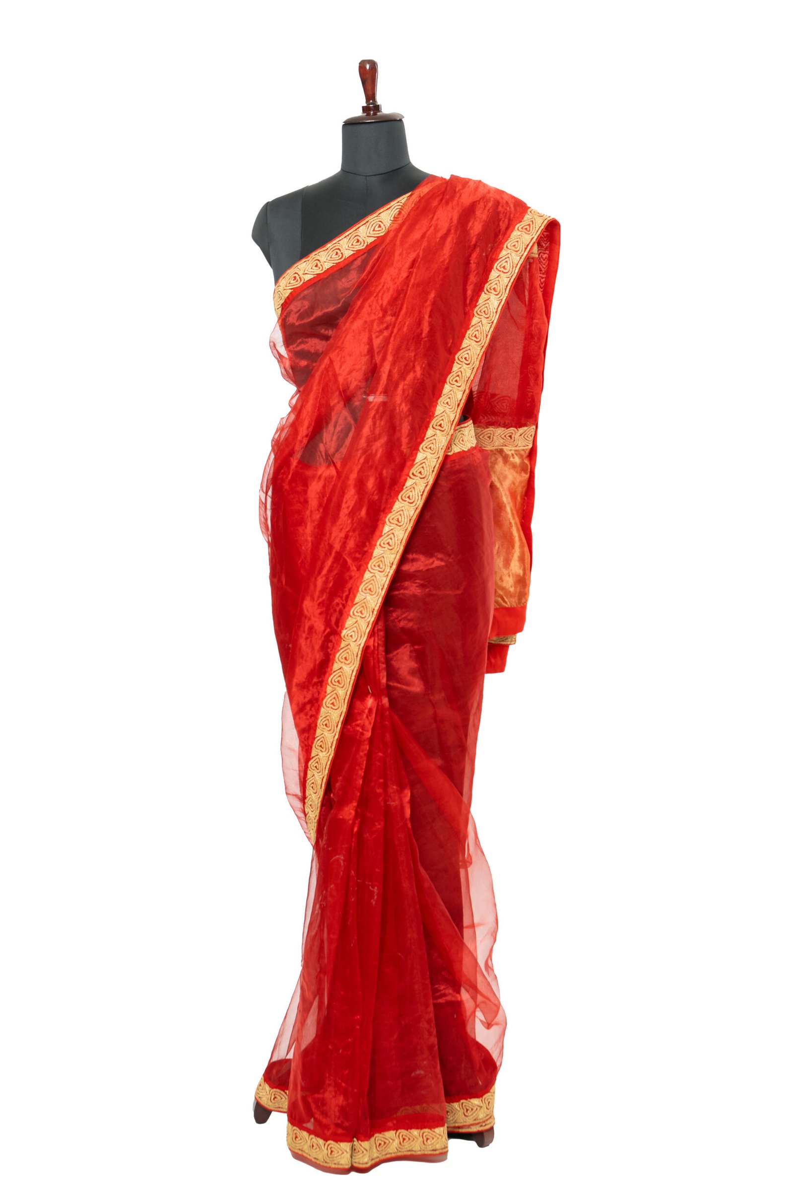 Pure tissue saree with delicate tilla embroidery available with Unstitched crepe blouse.